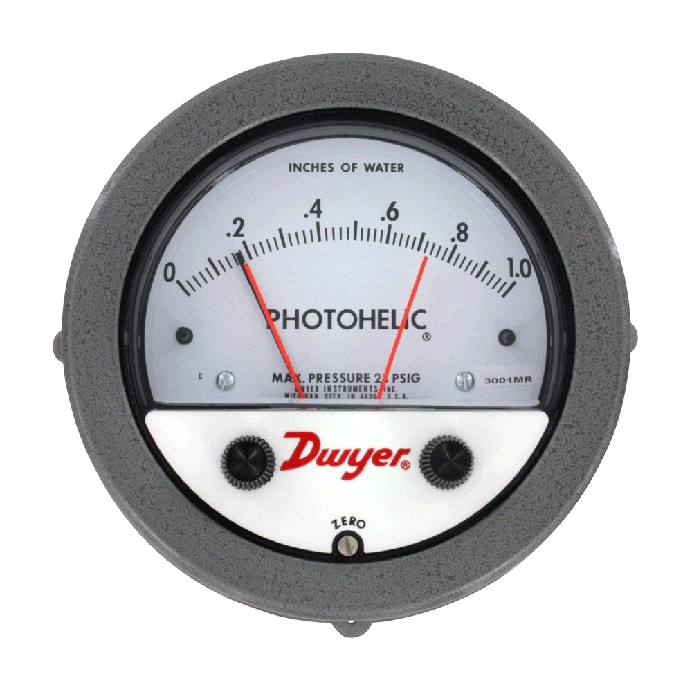 3000MR 3000MRS Photohelic? 差压表的精度是±2%, 开关的重复精度是±1%,回差小于1%,比指针的宽度还窄。它可用于空气或其它不可燃,无腐蚀的气体,耐压到25psig(1.725bar)。有耐压35 psig(2.42bar)或耐压80 psig (5.51bar)的特别结构选项。