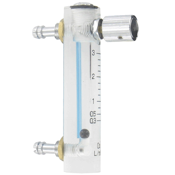 The Compact Series OMA Oxygen Flowmeter is made especially for medical applications and manually controlling flow from oxygen generators. Flow levels are kept stable by precision valve and knob adjustment. The low cost flowmeter is made from durable clear acrylic plastic. They easy-to-read scale is hot stamped into the acrylic so it will not wear off. The ball float is highly visible against the light blue background. Readings are repeatable within ±4% full scale accuracy.