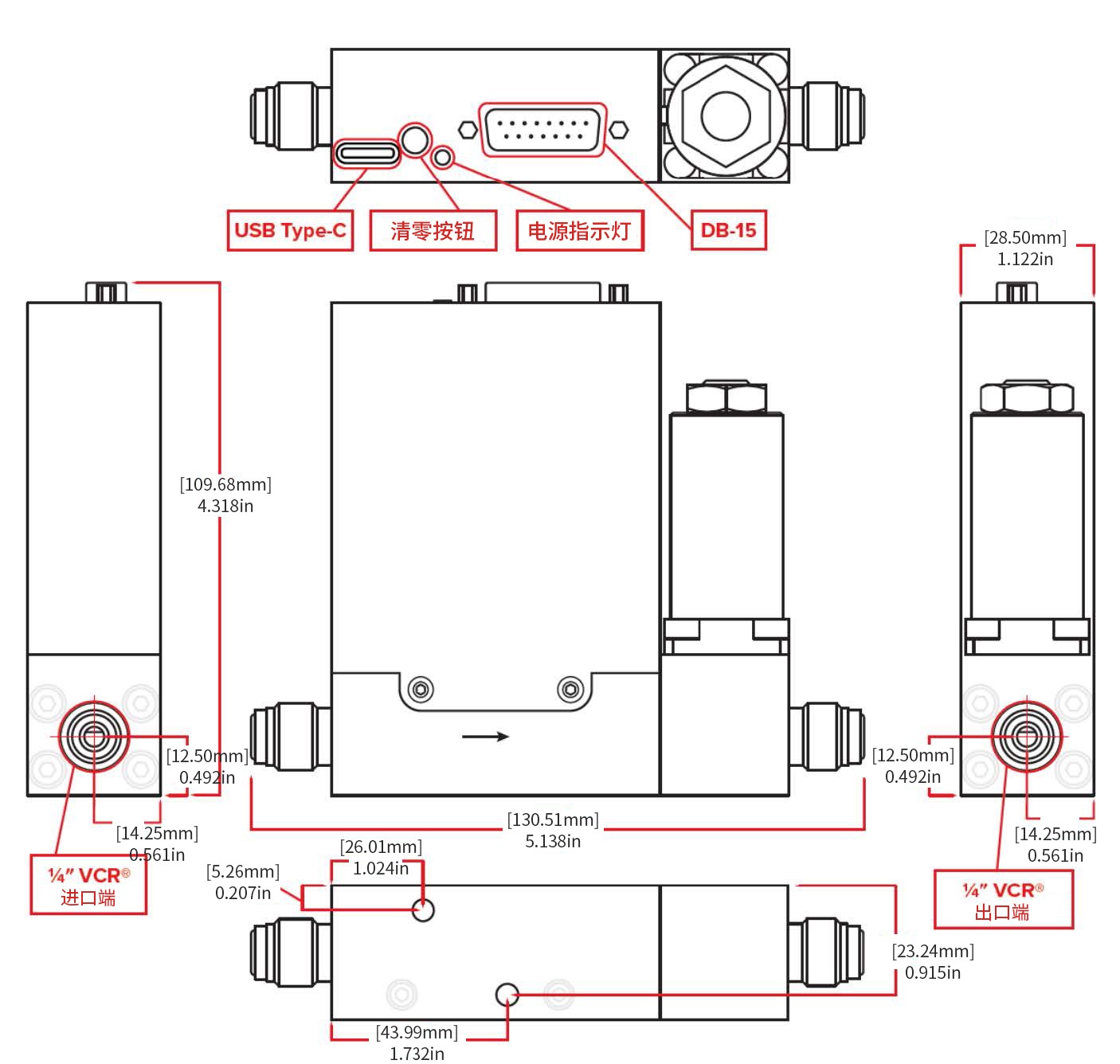 3 kg/h–10 kg/h | 1/4″ VCR?-外螺纹 | 40 μm | ≥15 PSID | 1500 | 2× M5-0.8 × 10 mm |