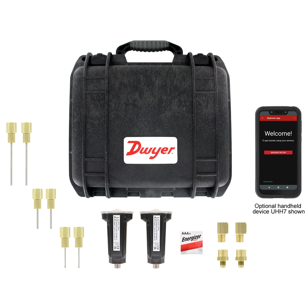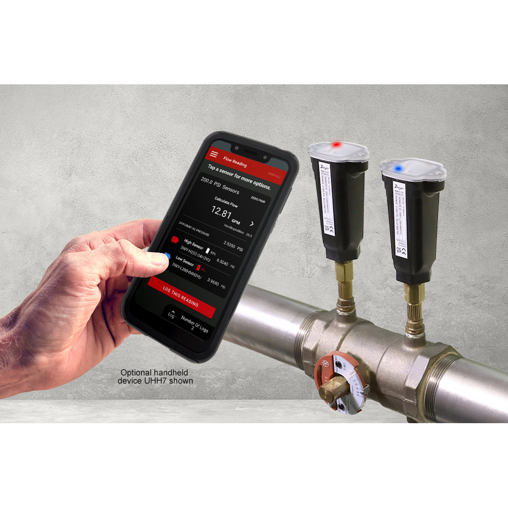 490W系列液用差压测量套件 是目前市场上最方便采用手机操作的精准的差压测量装置。采用无线传感器配合移动设备来监测,单人就能进行全面监测记录来平衡液压系统,和传统的液压平衡仪器相比较,可以节省大量时间。490W系列无线传感器可配合Dwyer的UHH6手持式装置,或配合自己的手机进行差压或流量的监测和记录。采用移动通讯技术通过蓝牙与传感器进行通信,来监测压差和流量。无需采用测量管来连接仪表,也不需安装泄放阀。和490W配合使用的是Dwyer的液压应用软件APP,这个软件包含了很多阀门制造公司阀门制造的特性参数,可将差压转换成流量直接在屏幕上显示。